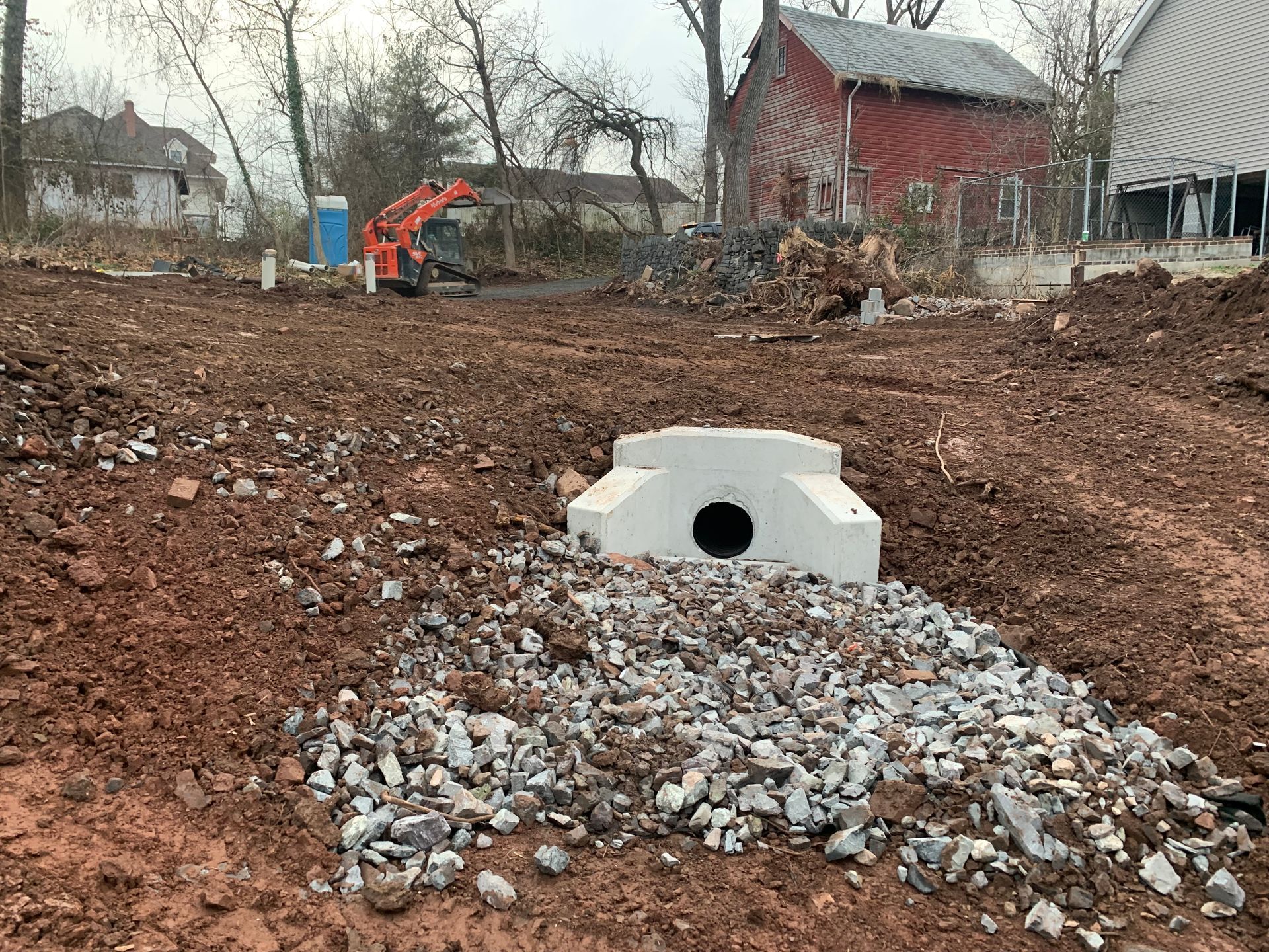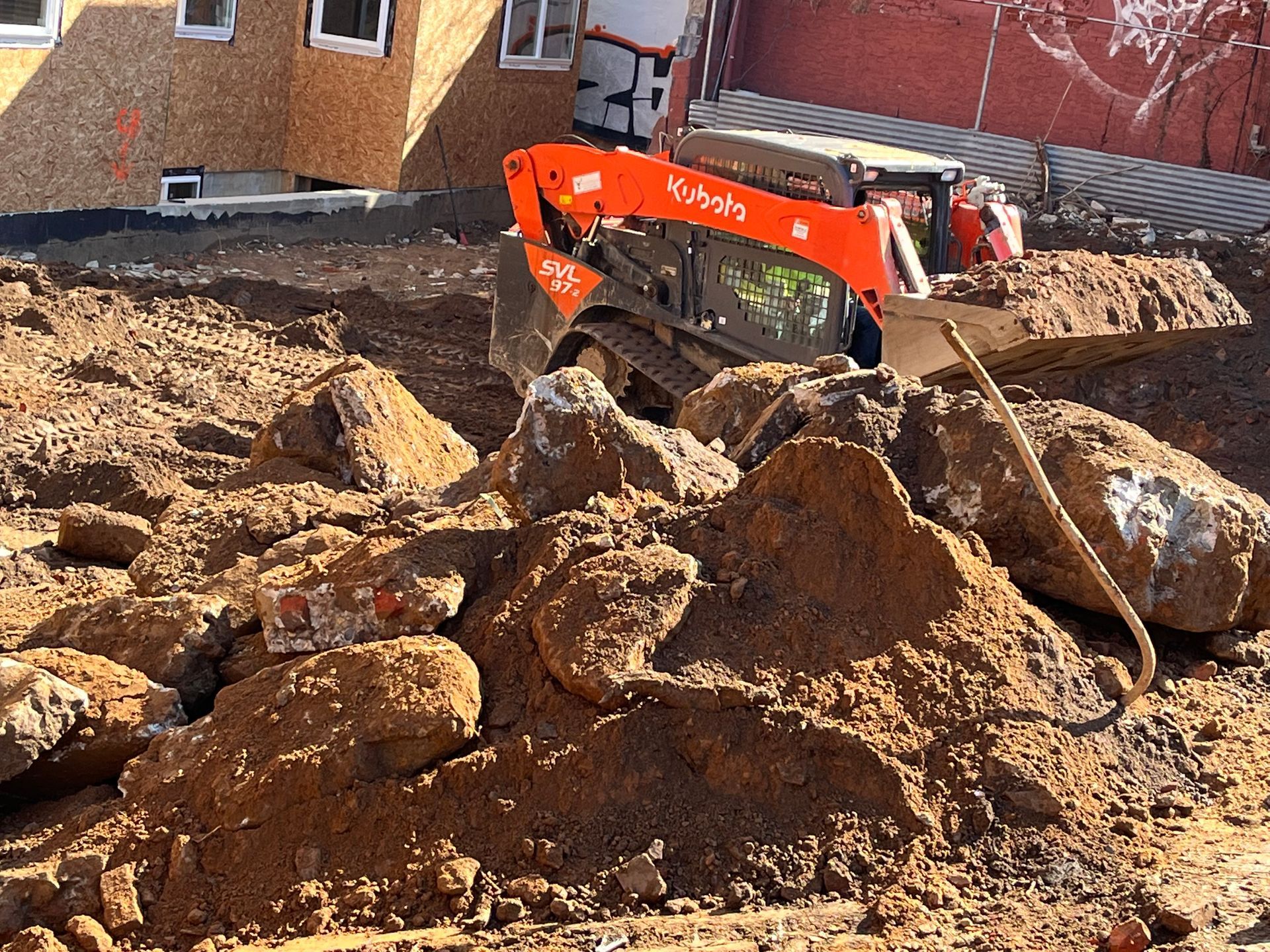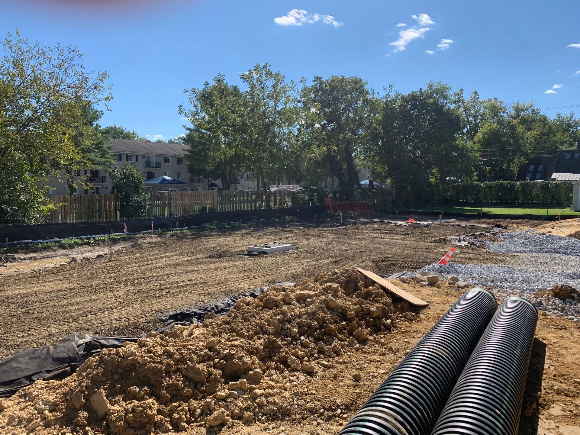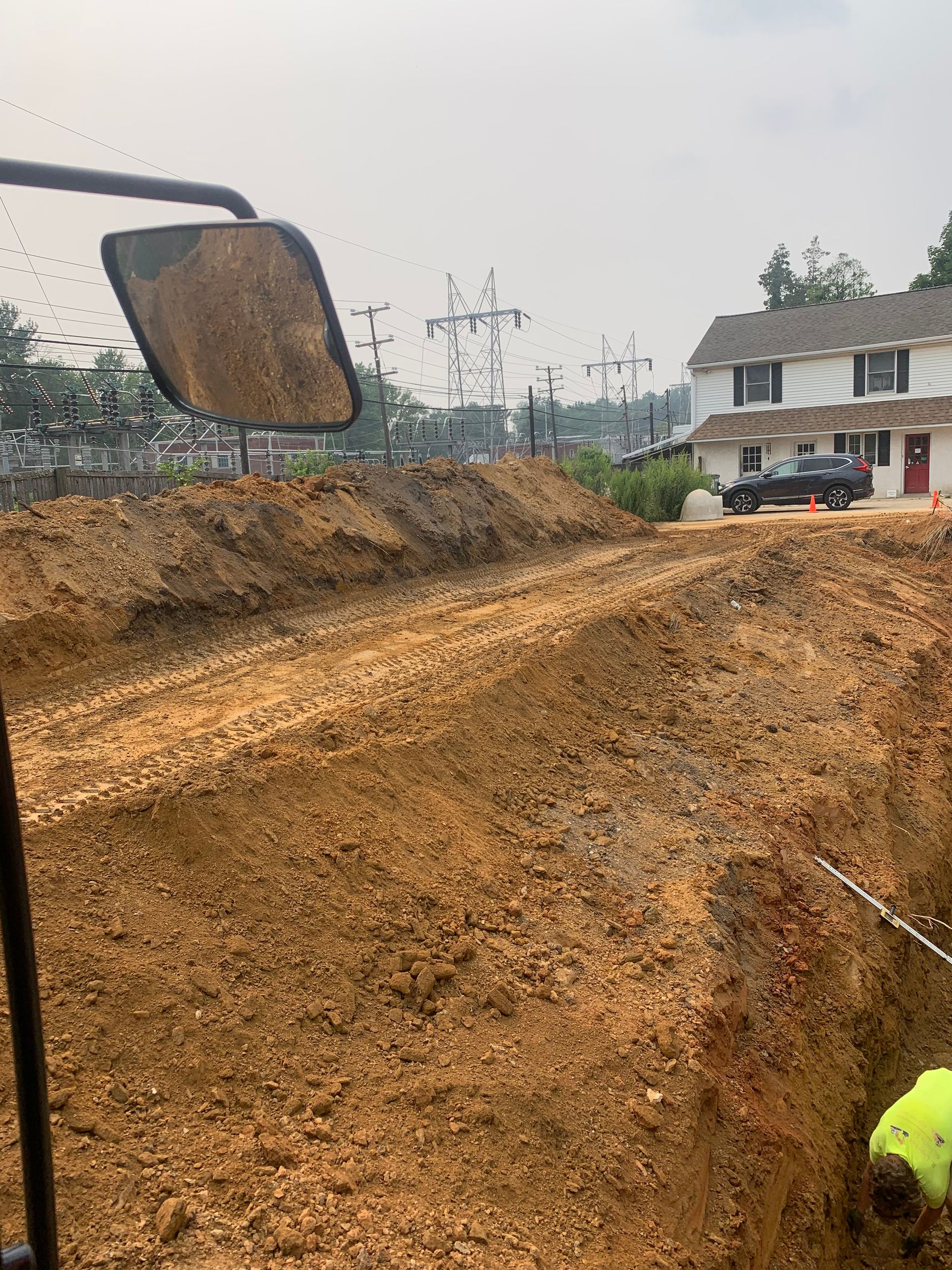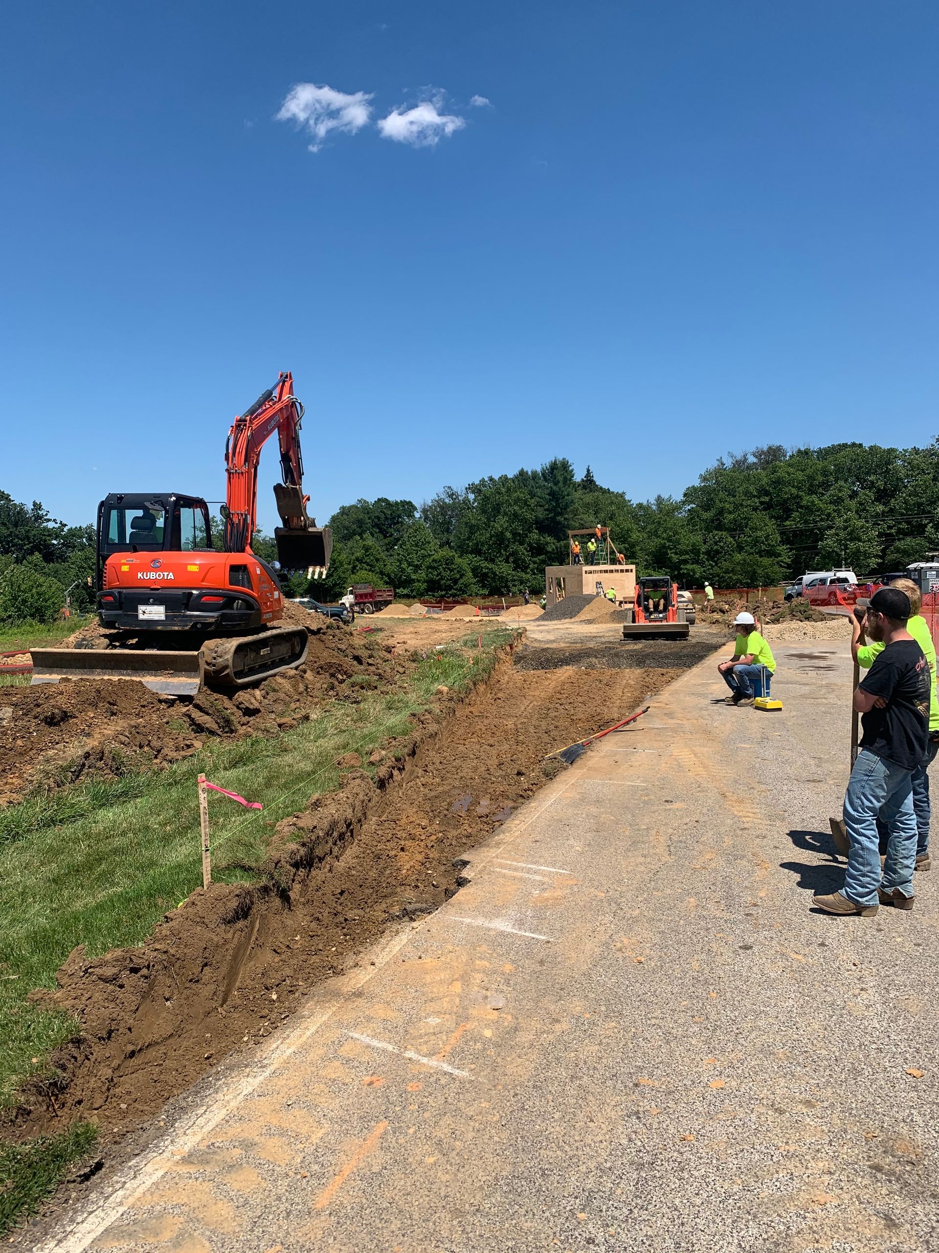Debris excavation, roadway cut and prep, and utility excavation for an apartment building,