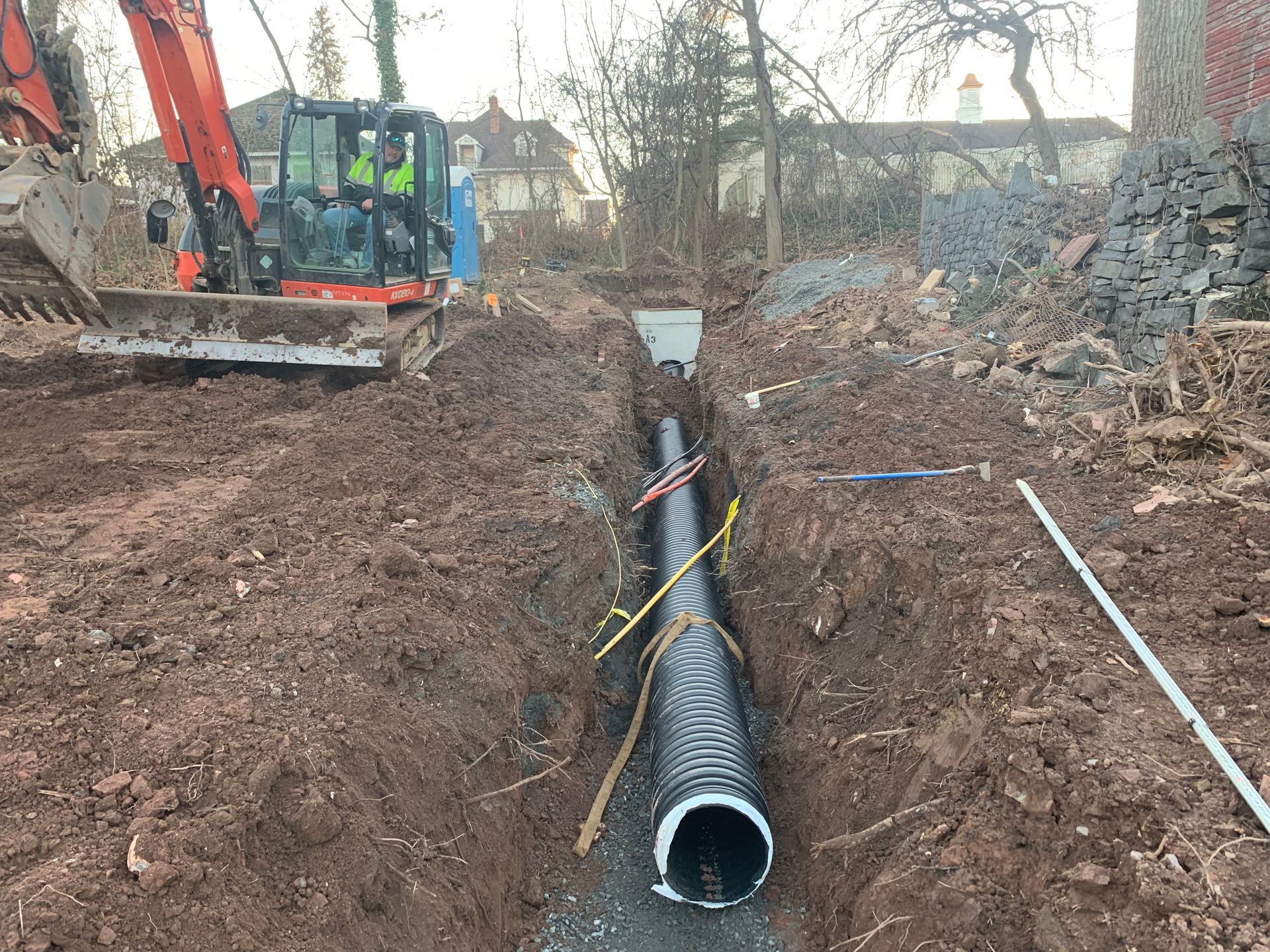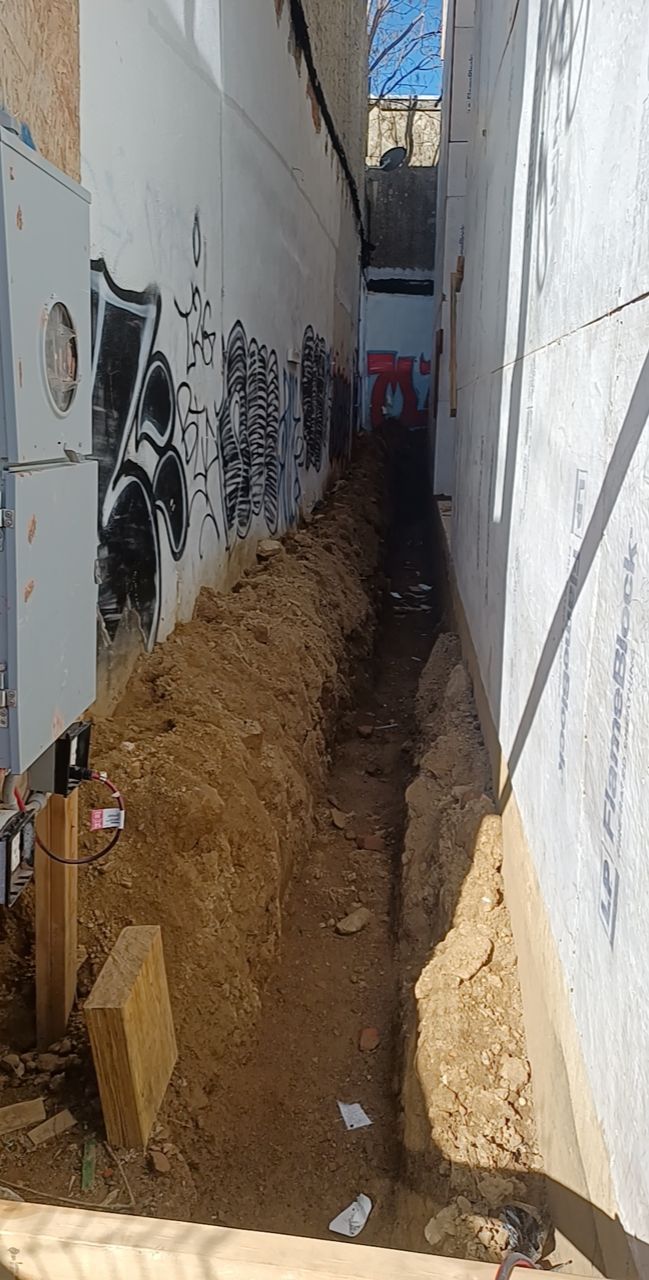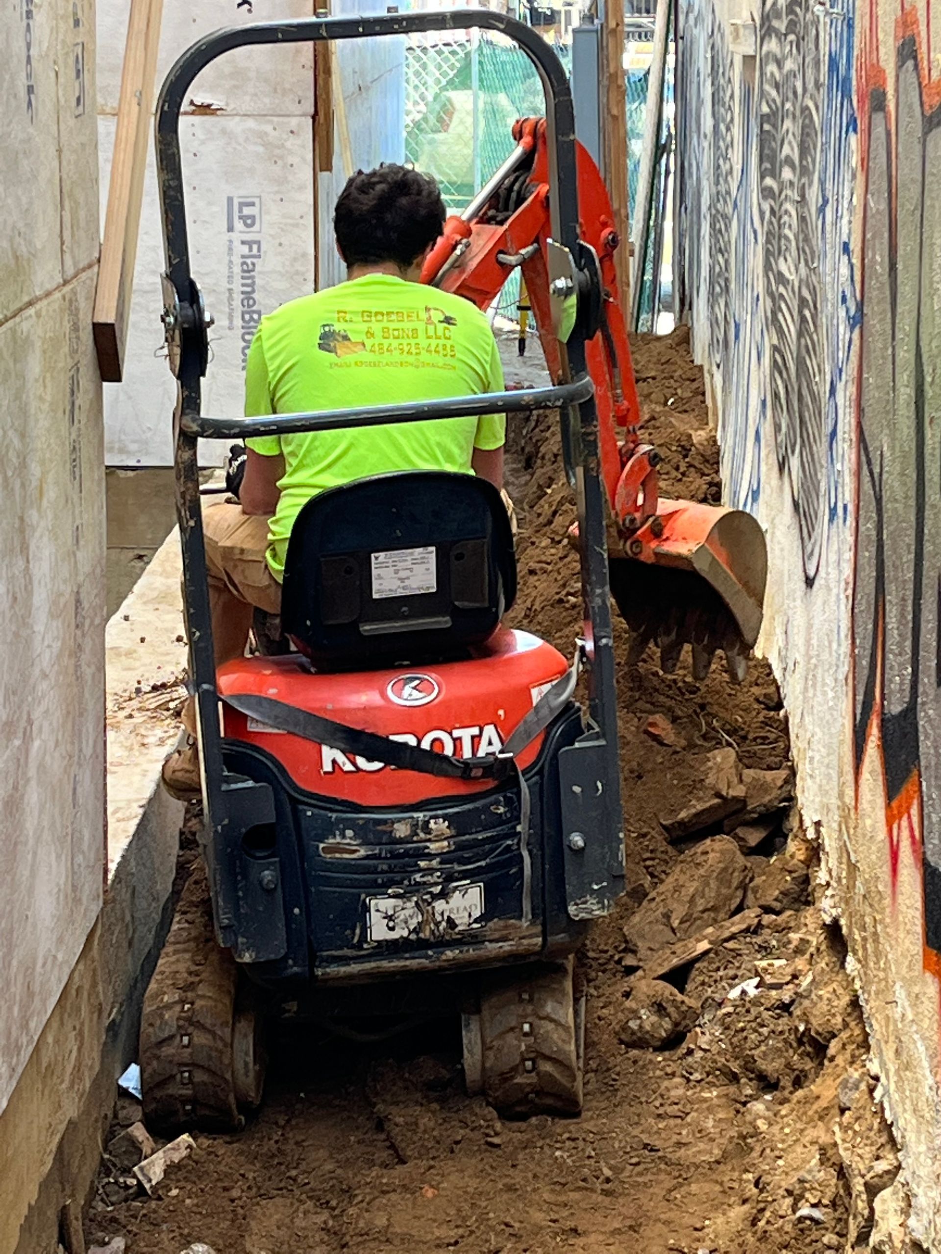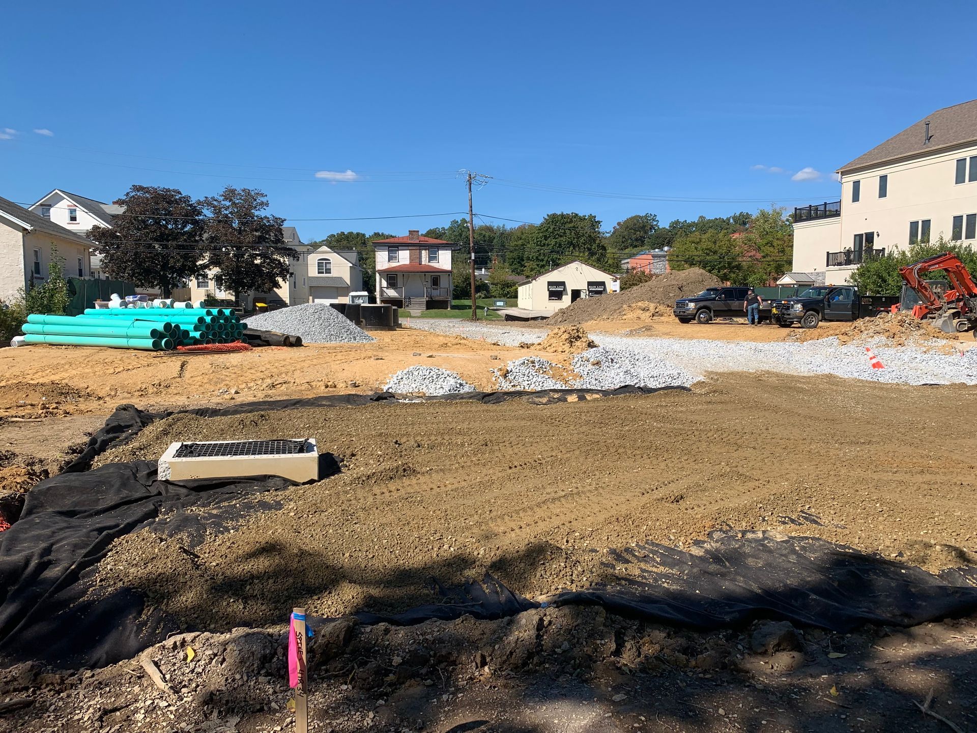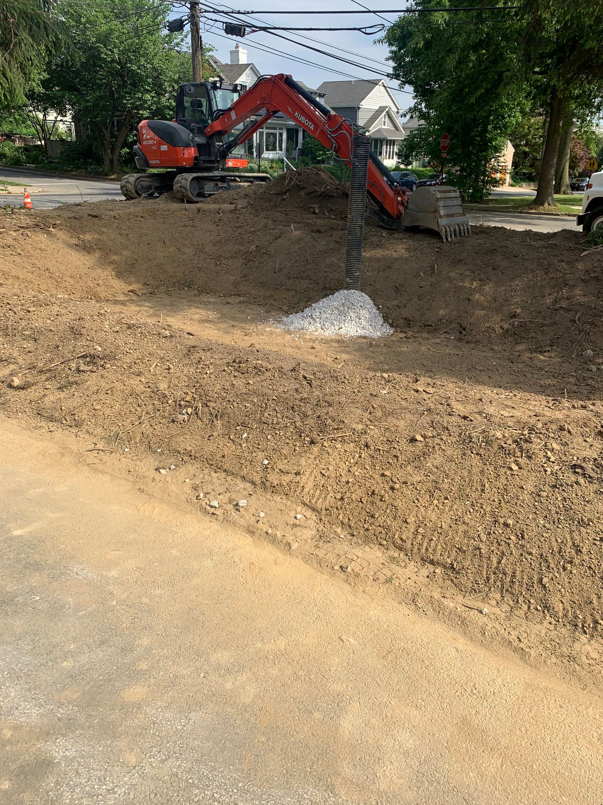 Debris excavation, roadway cut and prep, and utility excavation for an apartment building,